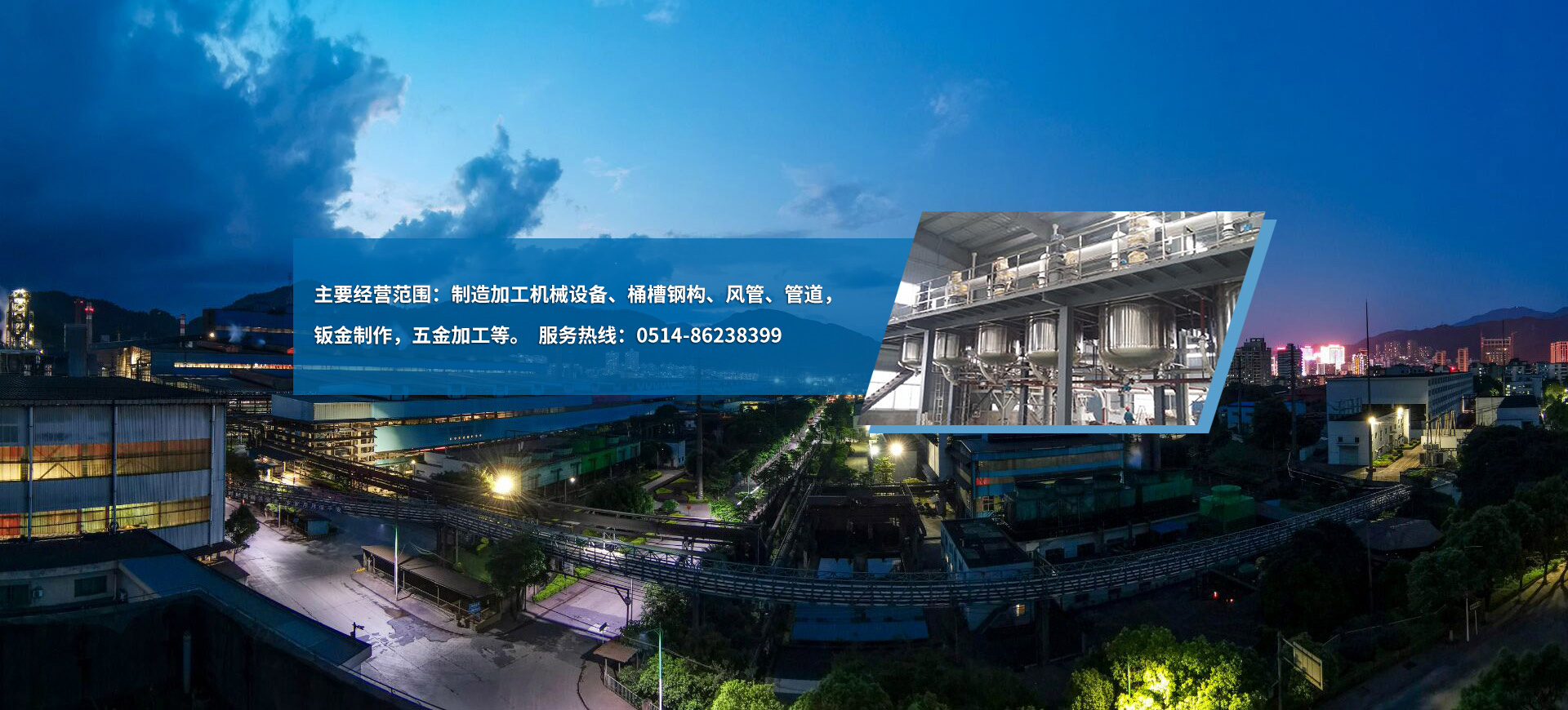 經營范圍 :機械設備、桶槽鋼構、風管、管道制造、加工、銷售,鈑金制作,五金加工,自營和代理各類商品及技術的進出口業務